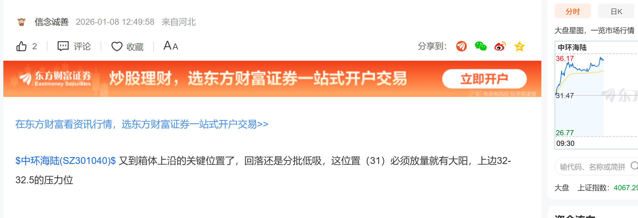 温馨提示: 1.根据《证券法》规定,禁止编造、传播虚假信息或者误导性信息,扰乱证券市场;2.用户在本社区发表的所有资料、言论等仅代表个人观点,与本网站立场无关,不对您构成任何投资建议。用户应基于自己的独立判断,自行决定证券投资并承担相应风险。《东方财富社区管理规定》