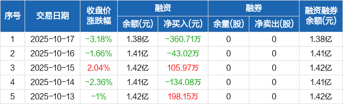 金百泽:融资净偿还360.71万元,融资余额1.38亿元(10-17)