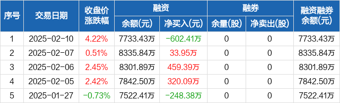 安联锐视:融资净偿还602.41万元,融资余额7733.43万元(02-10)