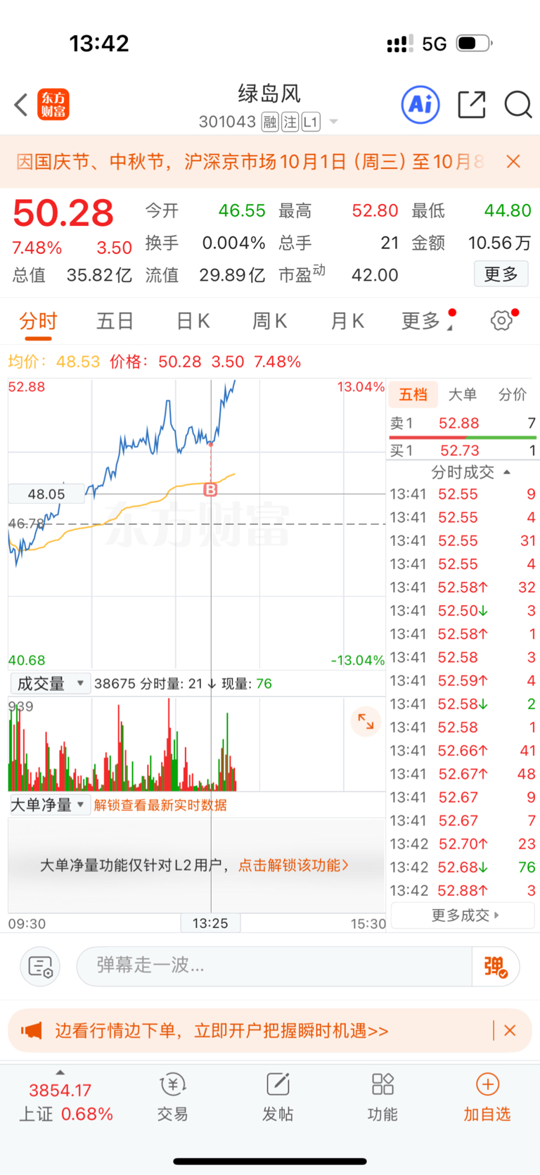 午盘50.28选择介入$绿岛风(SZ301043)$ #强势机会# #实盘记录# #投资干货# #投资随笔#