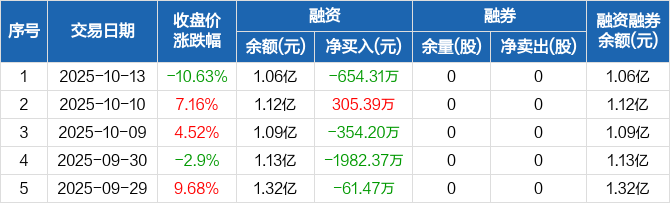 绿岛风:融资净偿还654.31万元,融资余额1.06亿元(10-13)