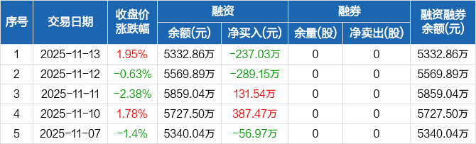 绿岛风:融资净偿还237.03万元,融资余额5332.86万元(11-13)