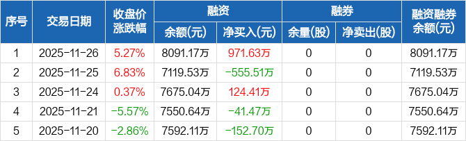 绿岛风:融资净买入971.63万元,融资余额8091.17万元(11-26)