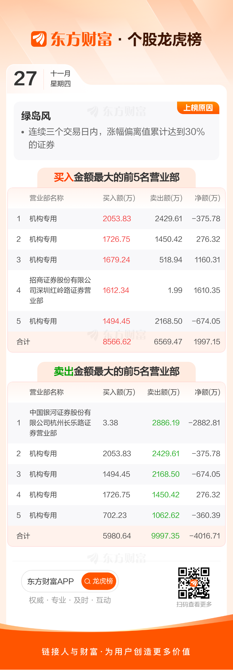 绿岛风(301043)龙虎榜数据(11-27)