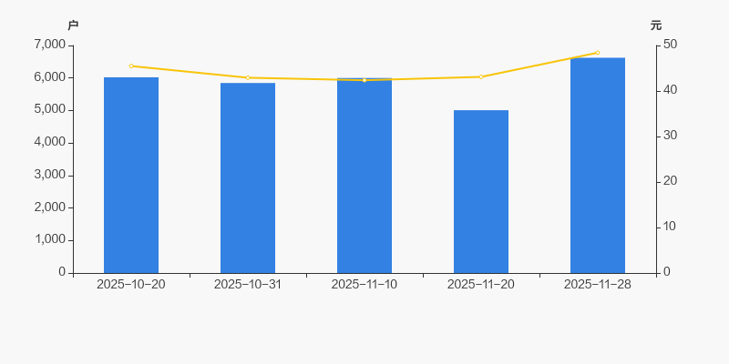 2025年10月20日至今,公司股东户数有所增长,区间涨幅为9.98%。2025年10月20日至2025年11月28日区间股价上涨6.46%。