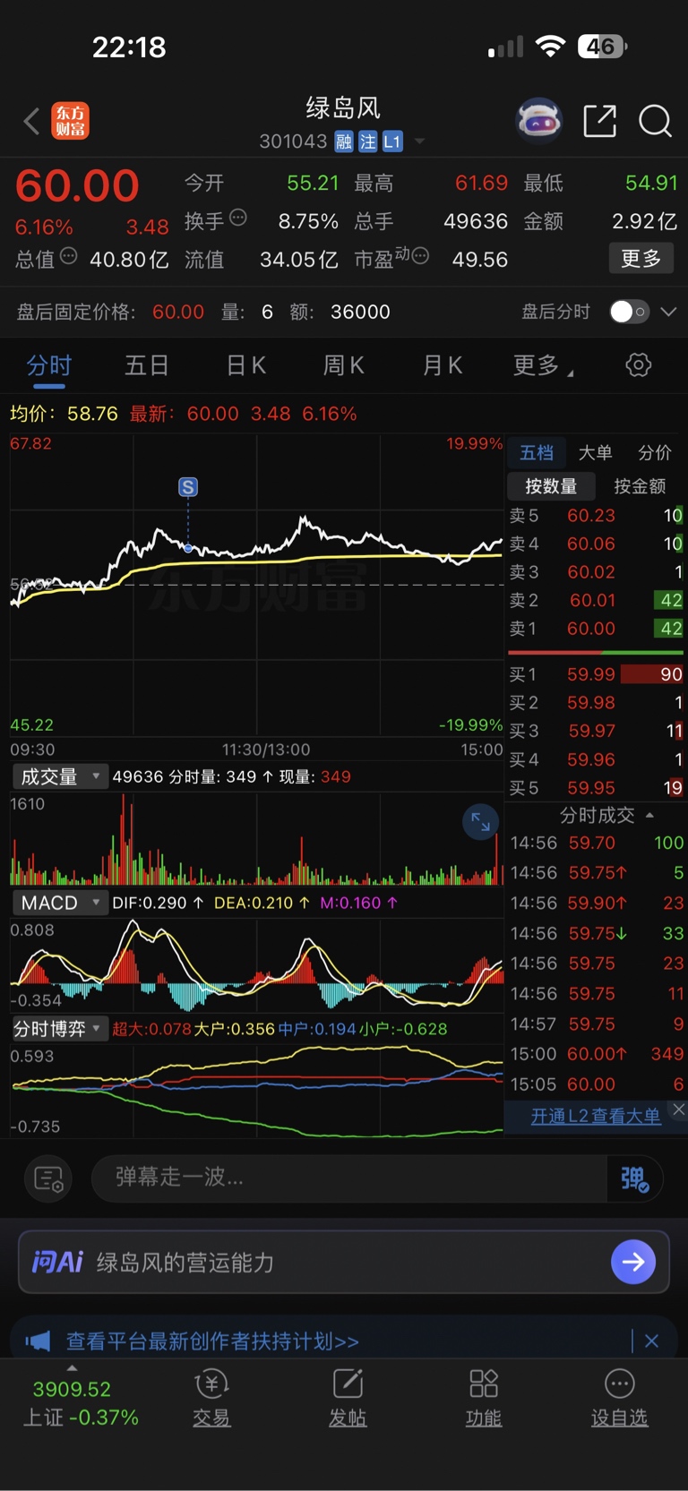 $绿岛风(SZ301043)$ 昨天尾盘买,今天早盘出了