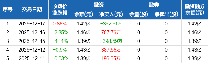 绿岛风:融资净偿还352.51万元,融资余额1.42亿元(12-17)