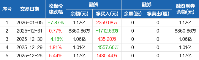 绿岛风:融资净买入2359.08万元,融资余额1.12亿元(01-05)