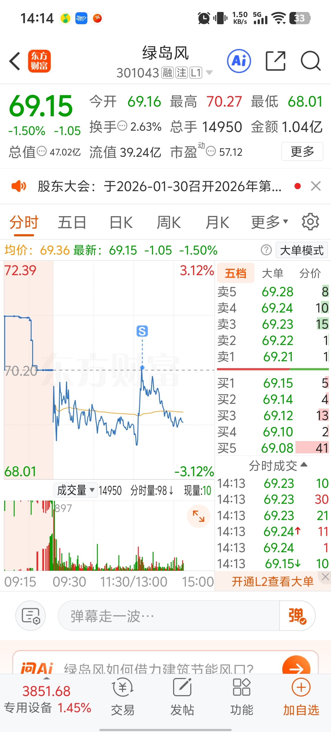 $绿岛风(SZ301043)$ 昨买今卖,2条好华子