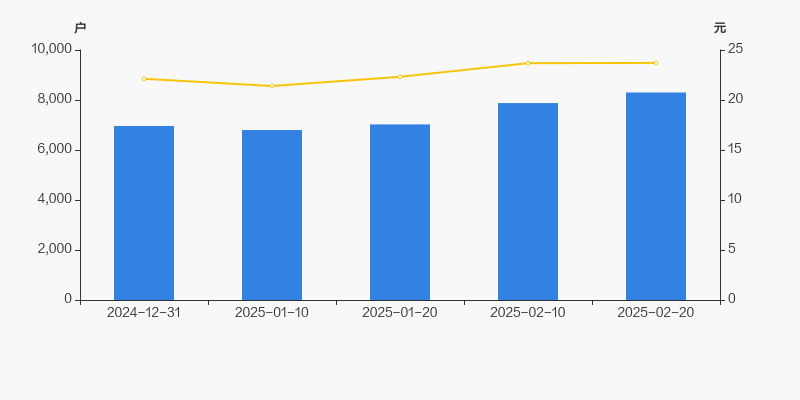 截至2025年2月20日,公司最新总股本为1.1亿股,其中流通股本为6792.5万股。户均持有流通股数量由上期的8623股下降至8184股,户均流通市值19.4万元。