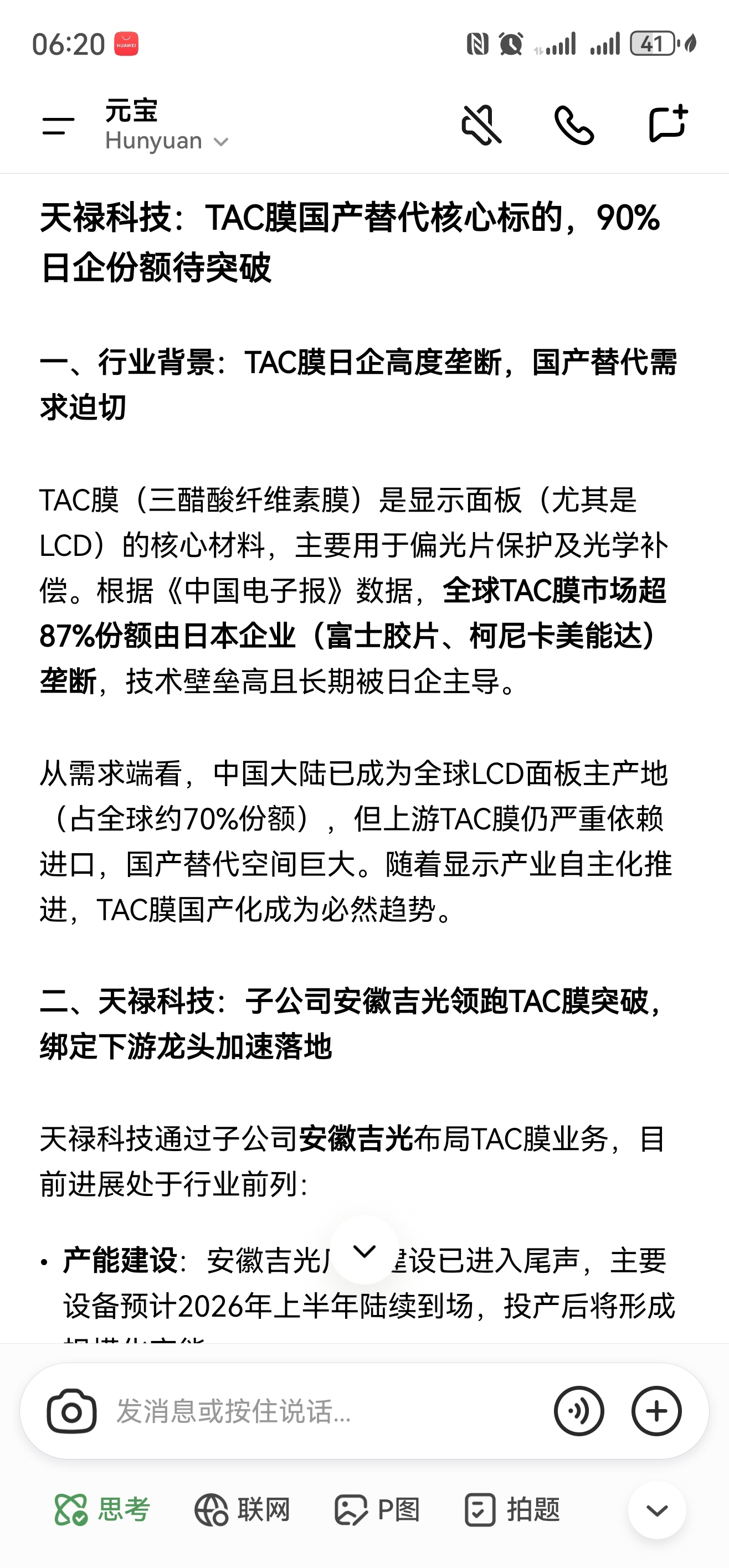 $天禄科技(SZ301045)$ 中日关系持续紧张,TAC光学膜国产替代核心公司天禄科技,产业链自主安全可控迎来新机遇。