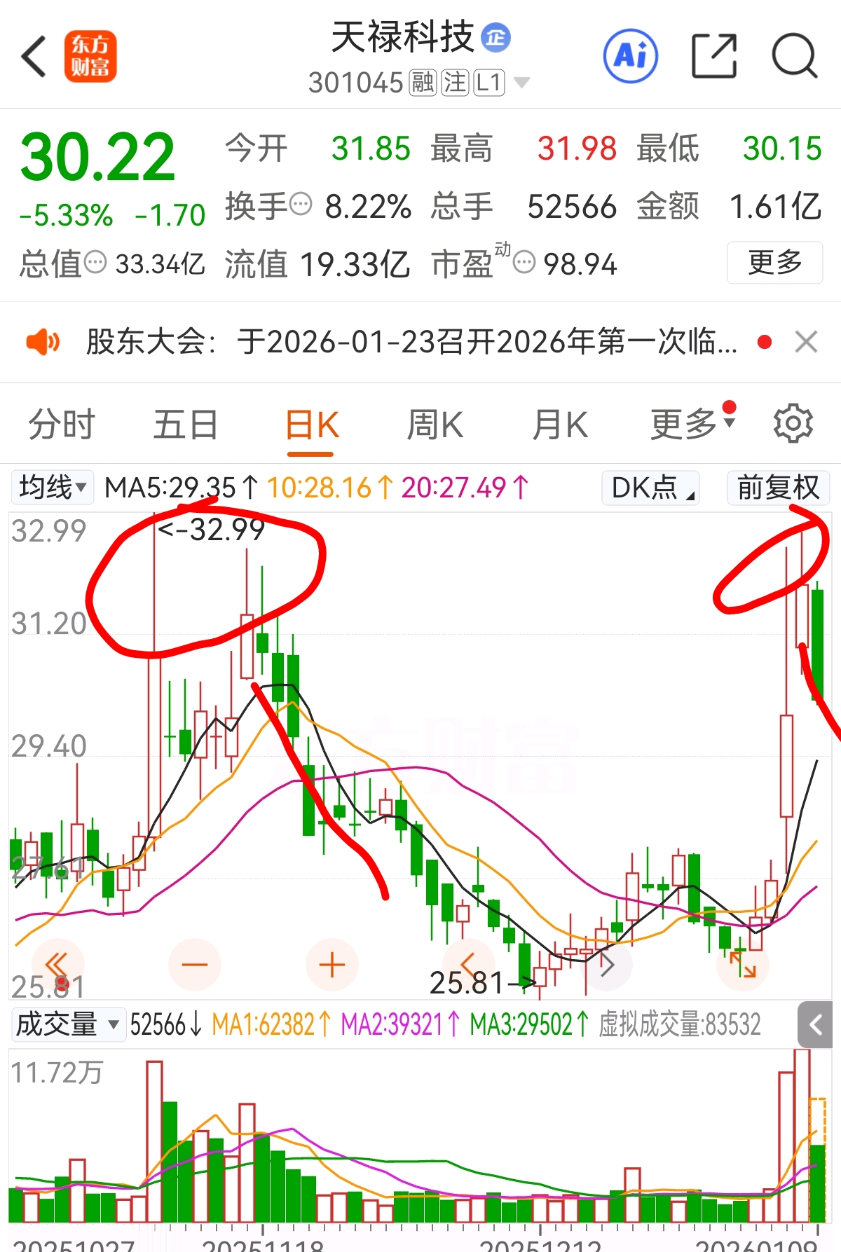 $天禄科技(SZ301045)$ 看图,思路从没变过,不过改掉23+的预期,这次26+建仓