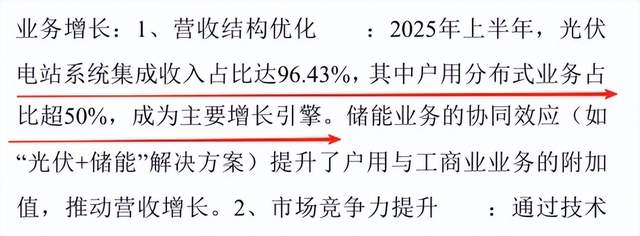 在营收结构上,2025年上半年,光伏电站系统集成收入占比达96.43%,其中户用分布式业务占比超50%,成为主要增长引擎。