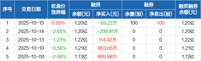 能辉科技:融资净偿还69.22万元,融资余额1.2亿元(10-15)