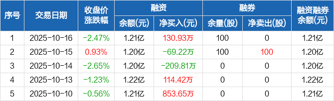 能辉科技:融资净买入130.93万元,融资余额1.21亿元(10-16)