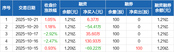 能辉科技:融资净买入6.37万元,融资余额1.21亿元(10-21)