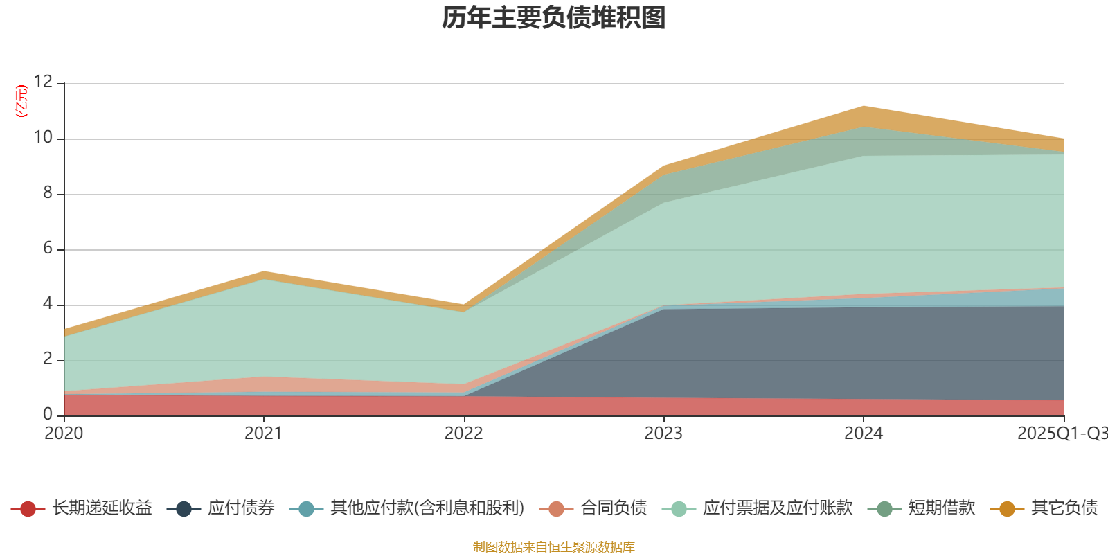 负债重大变化方面,截至2025年三季度末,公司短期借款较上年末减少90.48%,占公司总资产比重下降4.8个百分点;其他应付款(含利息和股利)较上年末增加94.1%,占公司总资产比重上升1.81个百分点;应付债券较上年末增加2.48%,占公司总资产比重上升1.58个百分点;长期应付款合计较上年末减少100%,占公司总资产比重下降1.32个百分点。