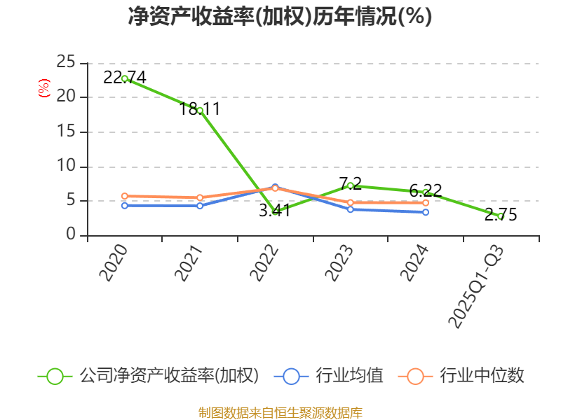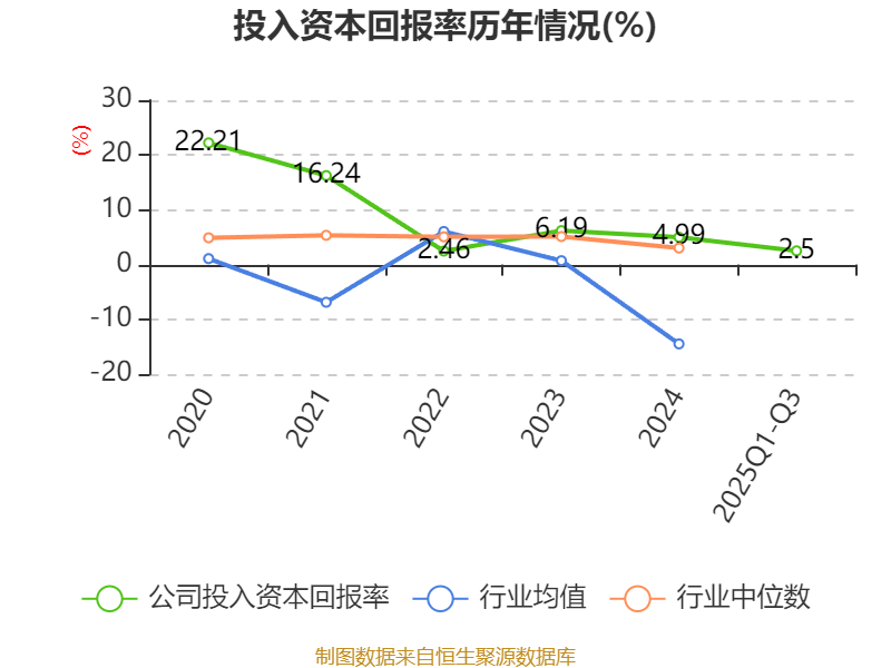 盈利能力方面, 2025年前三季度公司加权平均净资产收益率为2.75%,同比下降3.34个百分点。公司2025年前三季度投入资本回报率为2.5%,较上年同期下降2.15个百分点。