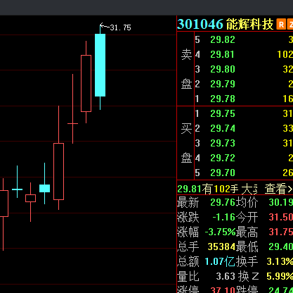 301046能辉科技压力位32元左右,不走你会后悔的!