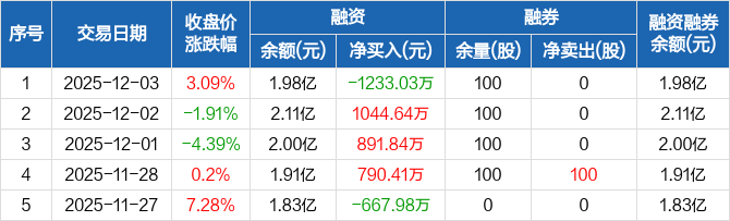 能辉科技:融资净偿还1233.03万元,创近一年新高(12-03)