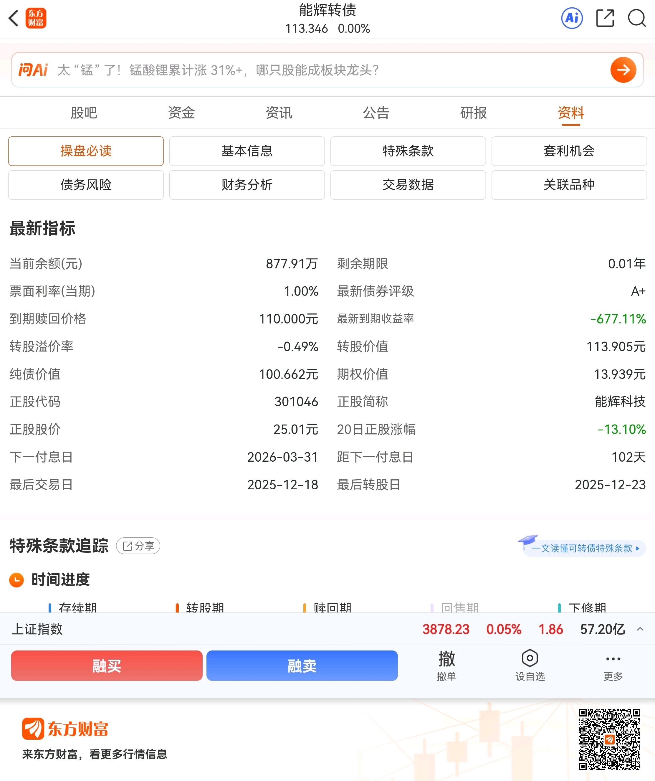 $能辉科技(SZ301046)$ 转债快没了。对正股影响没有了