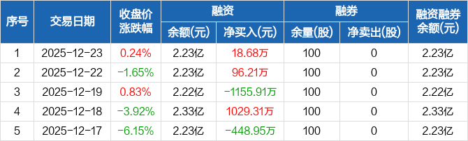 能辉科技:融资净买入18.68万元,融资余额2.23亿元(12-23)
