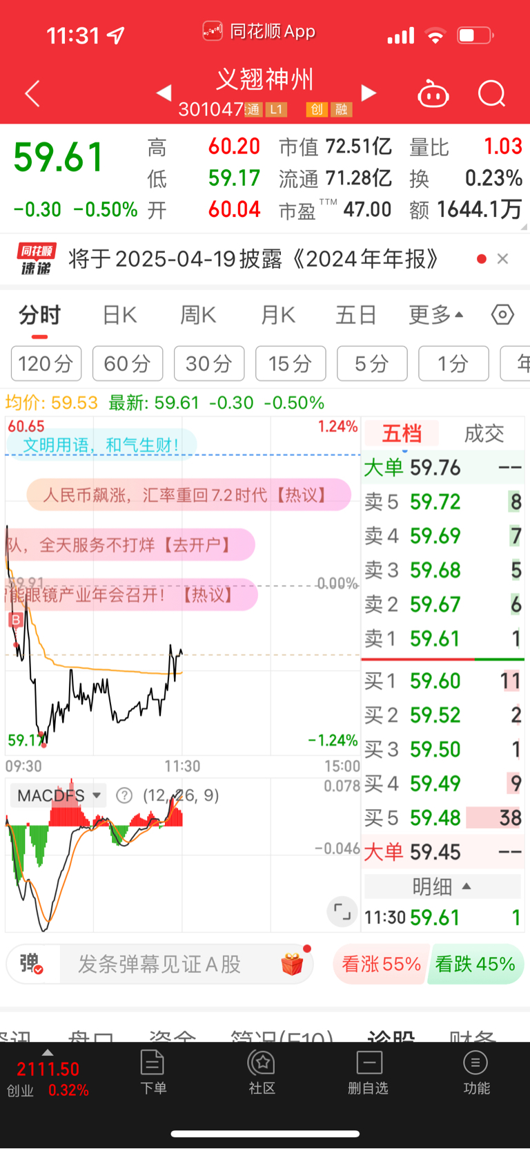 $义翘神州(SZ301047)$
