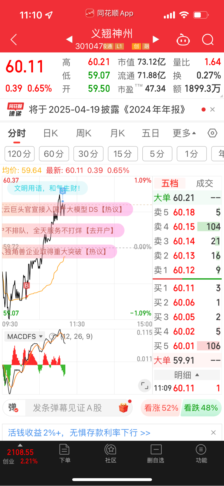 $义翘神州(SZ301047)$