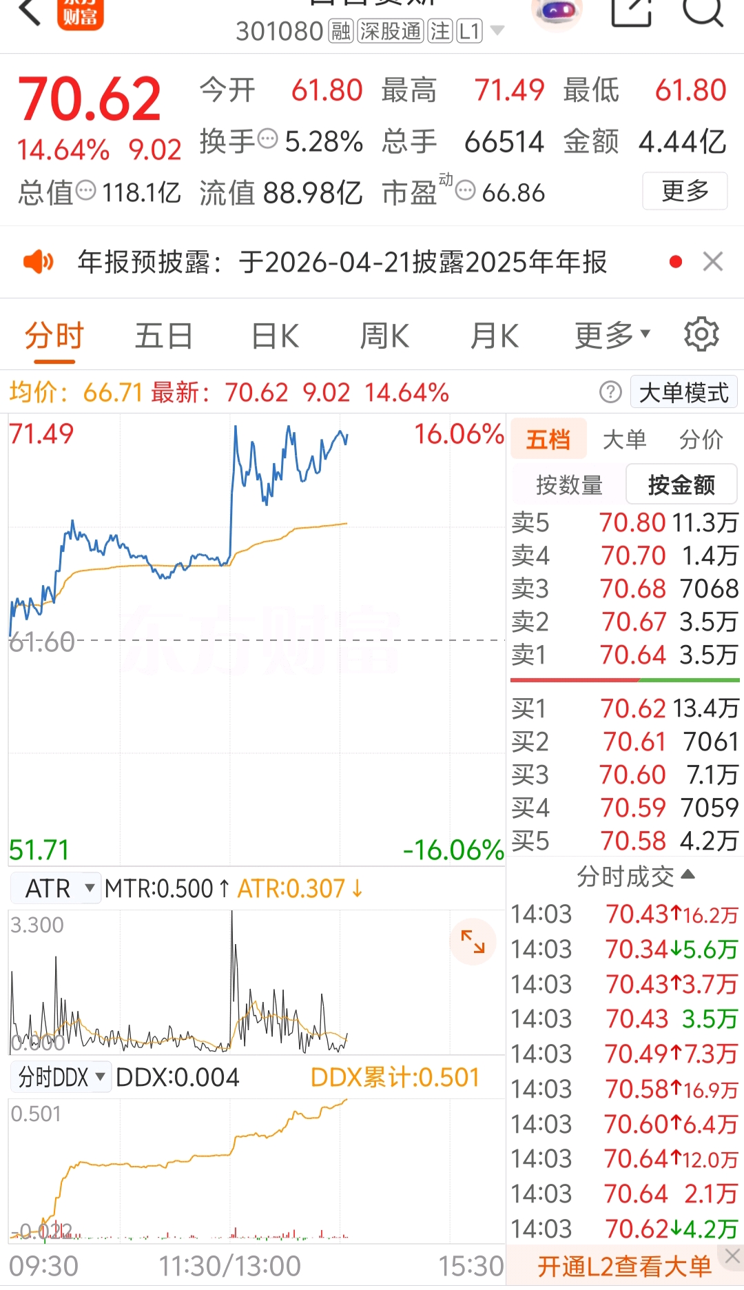 $义翘神州(SZ301047)$