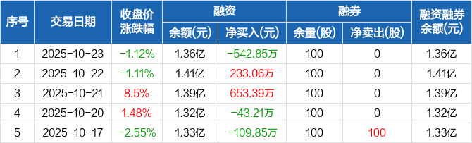 金鹰重工:融资净偿还542.85万元,融资余额1.36亿元(10-23)