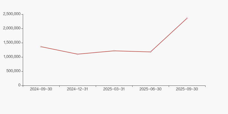 截至2025年9月30日,公司最新总股本为5.33亿股,且均为流通股。户均持有流通股数量由上期的2.76万股下降至2.38万股,户均流通市值27.93万元。
