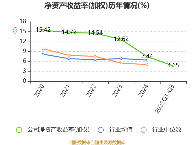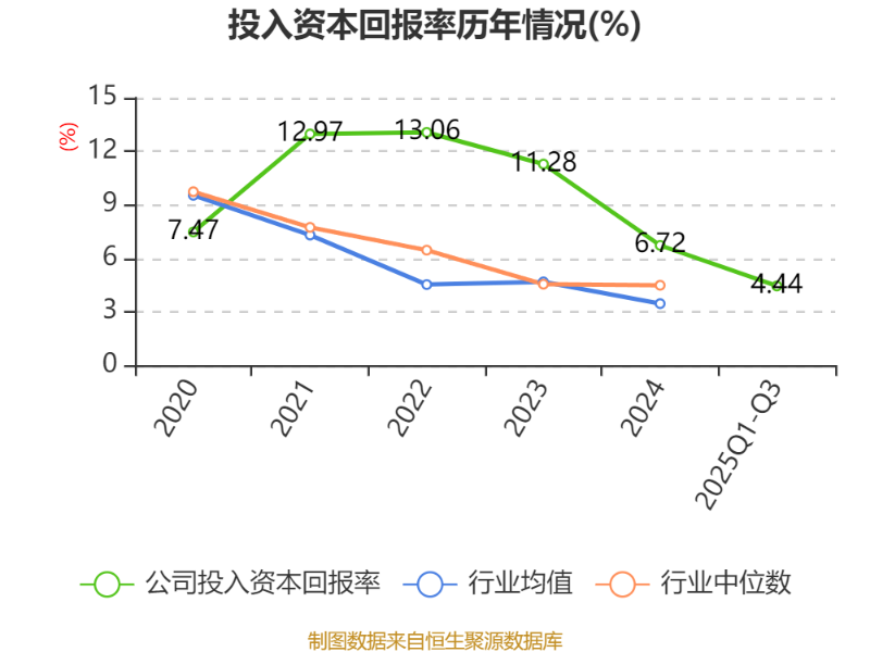 盈利能力方面, 2025年前三季度公司加权平均净资产收益率为4.65%,同比上升0.49个百分点。公司2025年前三季度投入资本回报率为4.44%,较上年同期上升0.57个百分点。