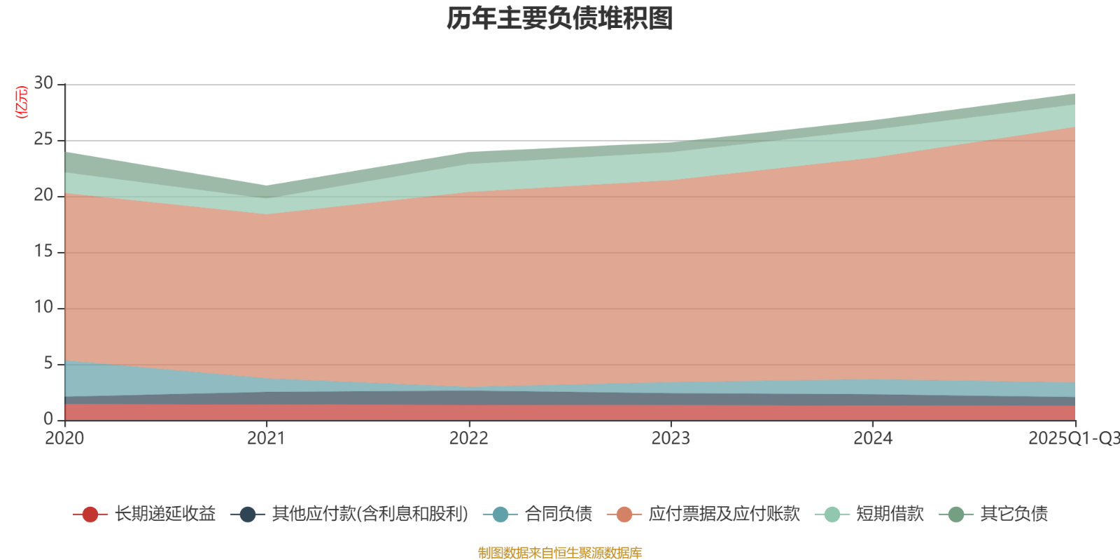 负债重大变化方面,截至2025年三季度末,公司应付票据及应付账款较上年末增加15.41%,占公司总资产比重上升3.15个百分点;短期借款较上年末减少20.01%,占公司总资产比重下降1.15个百分点;其他应付款(含利息和股利)较上年末减少21.97%,占公司总资产比重下降0.49个百分点;其他流动负债较上年末增加86.6%,占公司总资产比重上升0.34个百分点。