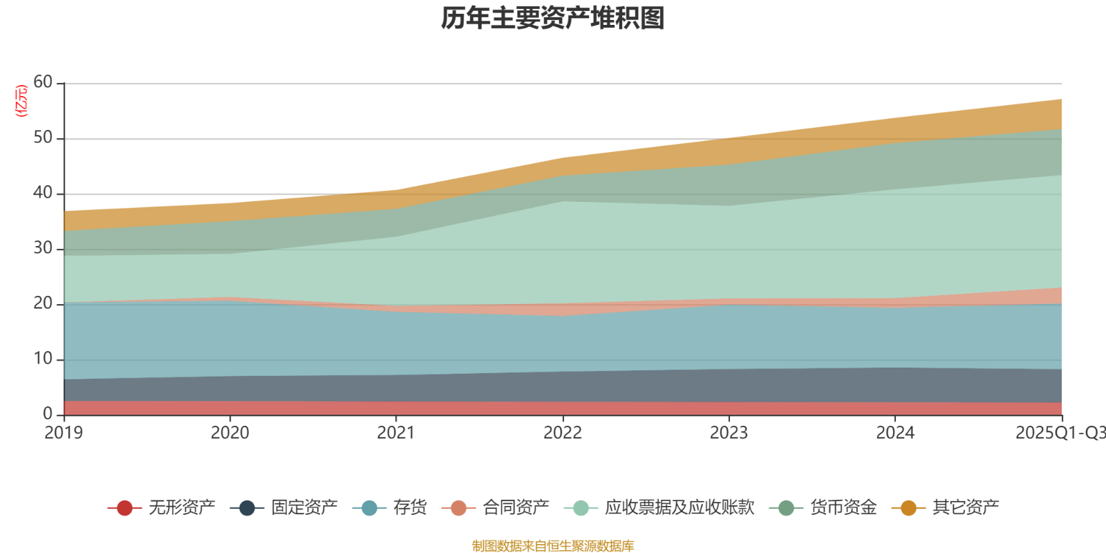 资产重大变化方面,截至2025年三季度末,公司合同资产较上年末增加67.43%,占公司总资产比重上升1.87个百分点;固定资产较上年末减少3.81%,占公司总资产比重下降1.11个百分点;应收票据及应收账款较上年末增加3.21%,占公司总资产比重下降1.07个百分点;货币资金较上年末减少0.51%,占公司总资产比重下降1个百分点。