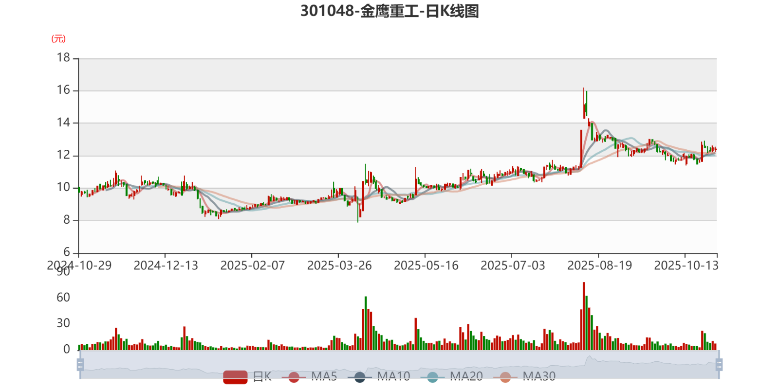 以10月28日收盘价计算,金鹰重工目前市盈率(TTM)约为31.34倍,市净率(LF)约2.41倍,市销率(TTM)约2.03倍。