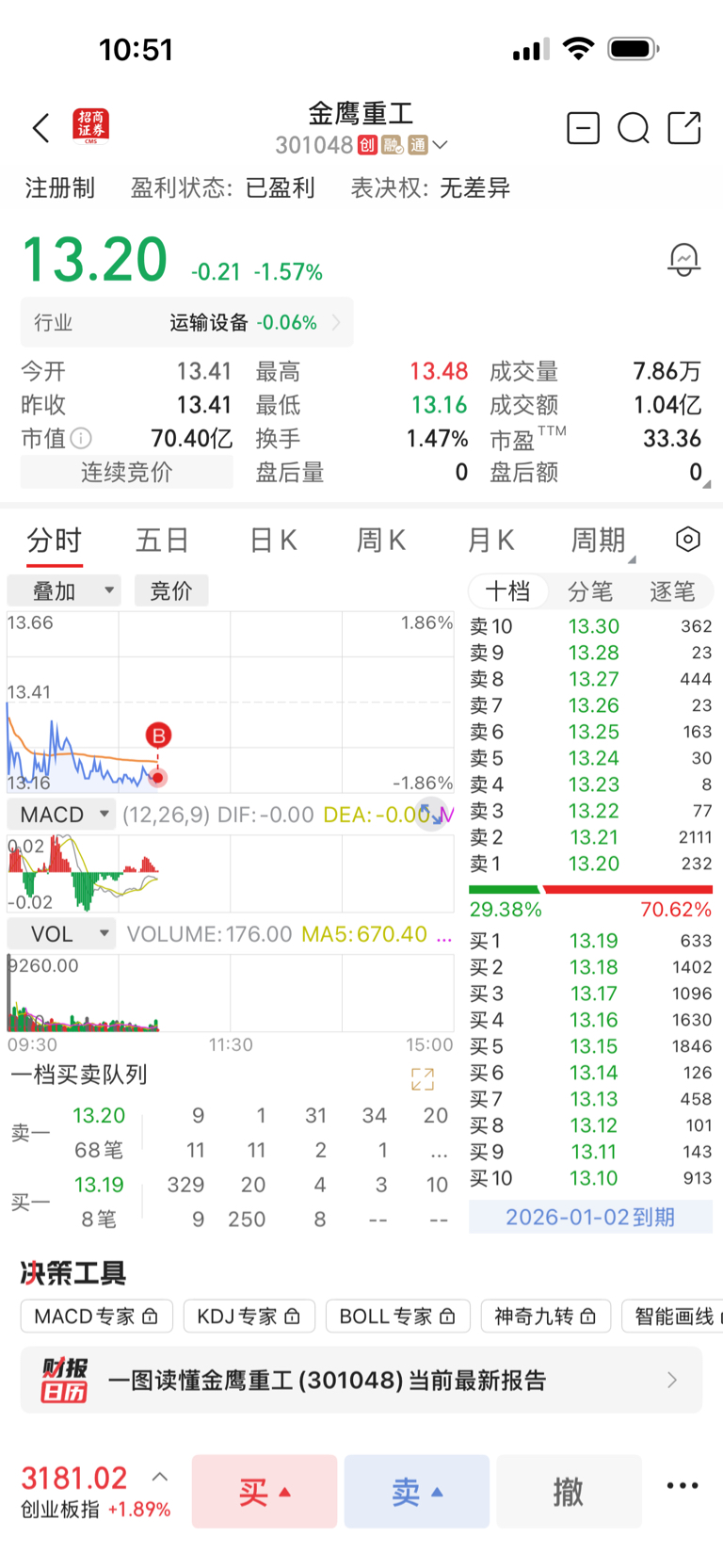 $金鹰重工(SZ301048)$ 加点仓,明天卖出