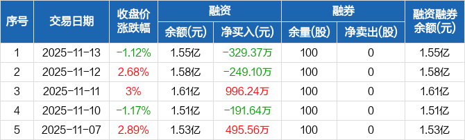 金鹰重工:融资净偿还329.37万元,融资余额1.55亿元(11-13)