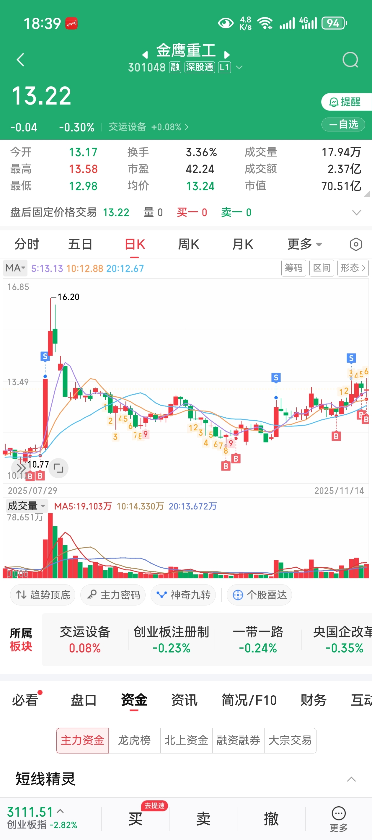 $金鹰重工(SZ301048)$ 加加加买买买搞搞搞