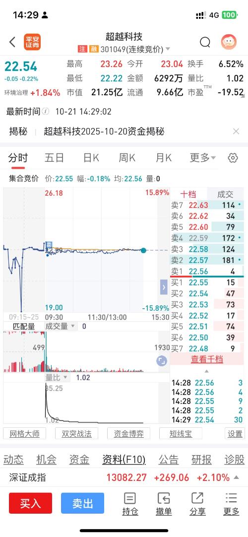 $超越科技(SZ301049)$ 收盘了,周五收盘22.32,周一高开微下跌,资金有抄底,收盘22.59,整体上涨1.21%.换手率11.6,今天走势属于分歧,期待明天表现,本人小资金亏1.38%.正常明天见