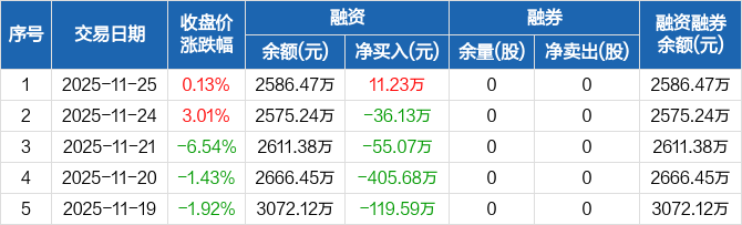 超越科技:融资净买入11.23万元,融资余额2586.47万元(11-25)