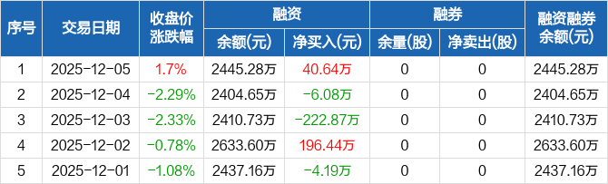 超越科技:融资净买入40.64万元,融资余额2445.28万元(12-05)