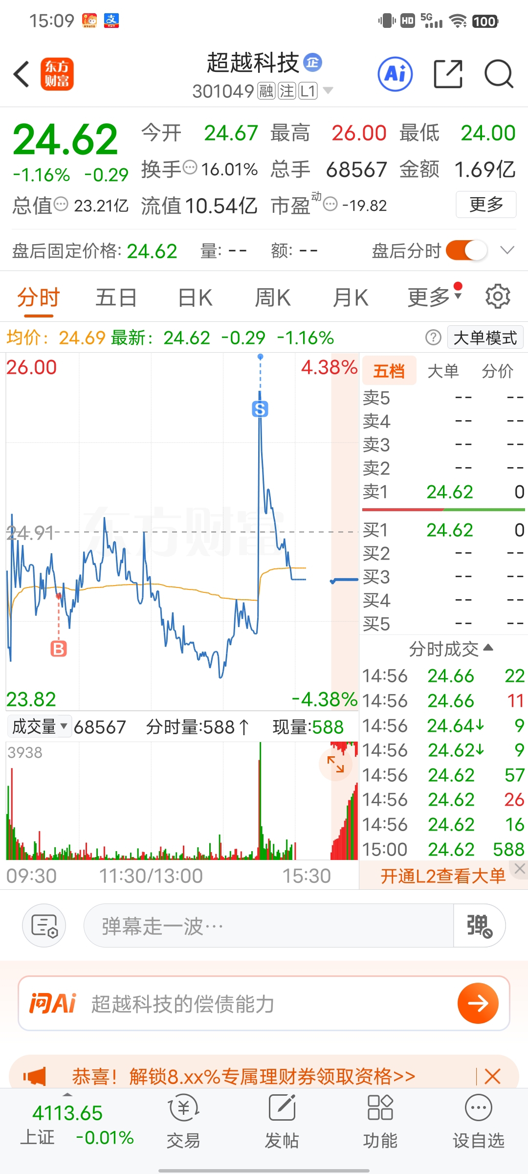$超越科技(SZ301049)$ 不吃到大肉前,每天做做T,看能不能做到负成本