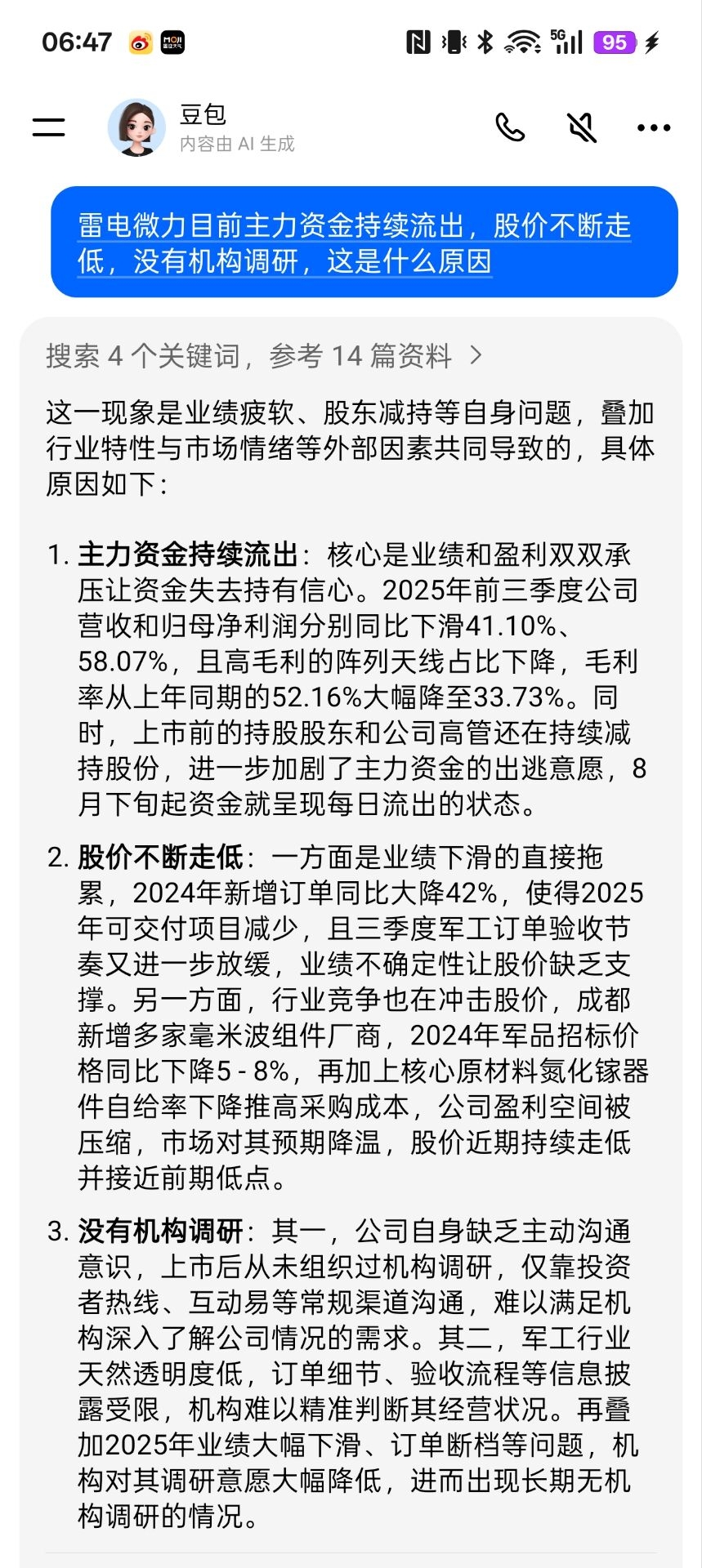 月初的时候,我给公司打过电话,公司的回答跟豆包所述基本一致,目前资金继续呈流出状