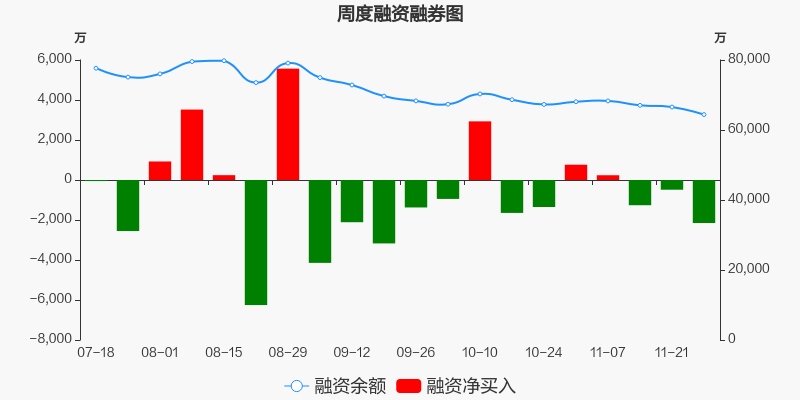 雷电微力本周(2025/11/24-2025/11/28)累计涨幅达2.92%,截至11月28日最新股价报收44.39元。从增量上来看,11月24日至11月27日融资买入交易规模6146.92万元,融资偿还规模8298.46万元,期内融资净偿还2151.54万元。从存量上来看,截止11月30日,雷电微力融资融券余额6.45亿元,其中融资余额规模6.44亿元,融券余额规模137.25万元。