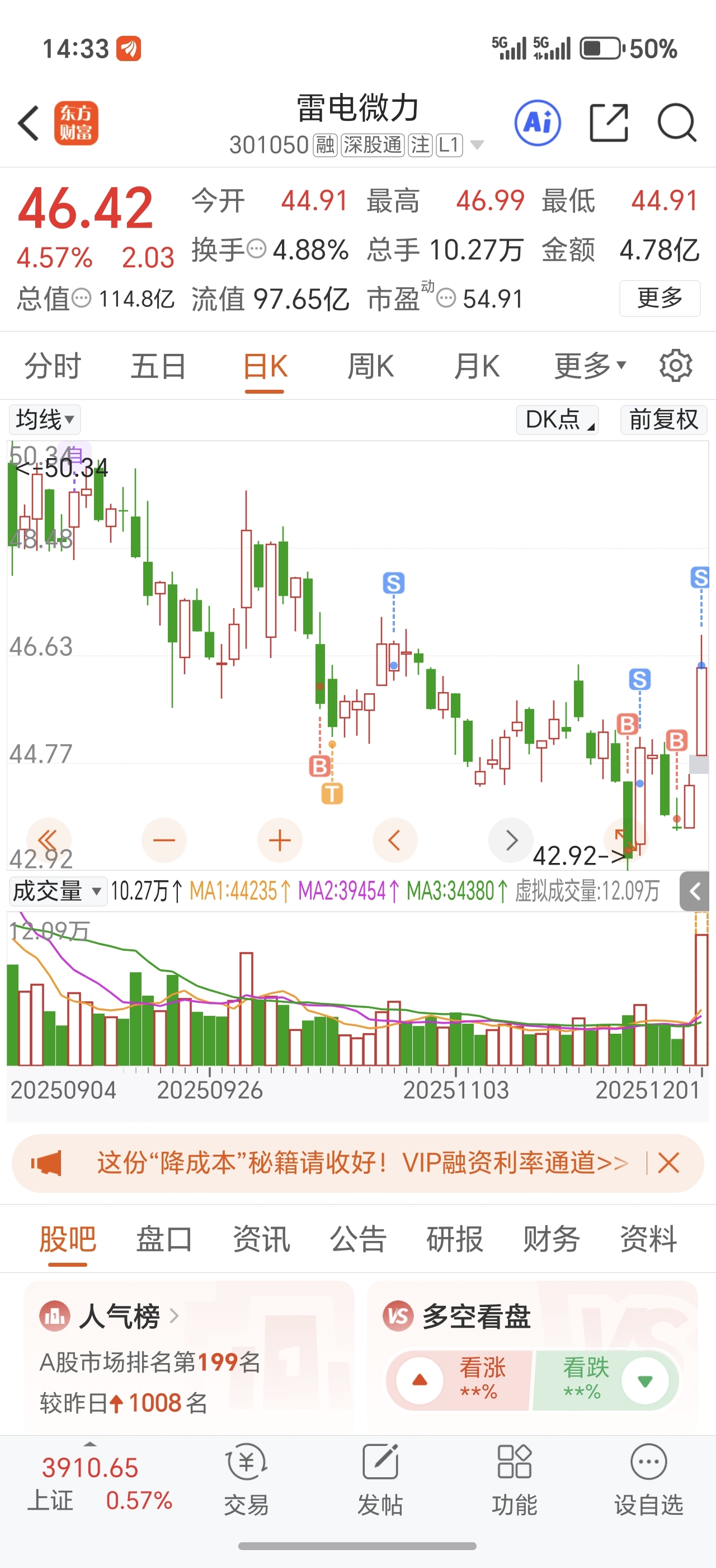 $雷电微力(SZ301050)$ 我是没格局的小菜鸡
