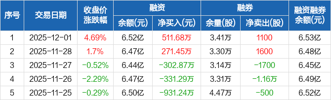 雷电微力:融资净买入511.68万元,融资余额6.52亿元(12-01)