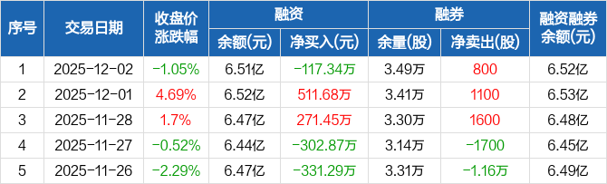 雷电微力:融资净偿还117.34万元,融资余额6.51亿元(12-02)