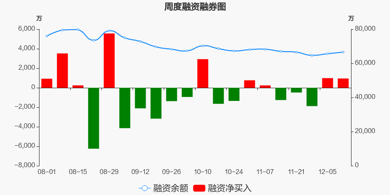 雷电微力本周(2025/12/08-2025/12/12)累计涨幅达1.06%,截至12月12日最新股价报收47.69元。从增量上来看,12月8日至12月11日融资买入交易规模1.84亿元,融资偿还规模1.74亿元,期内融资净买入949.7万元。从存量上来看,截止12月14日,雷电微力融资融券余额6.67亿元,其中融资余额规模6.66亿元,融券余额规模126.5万元。