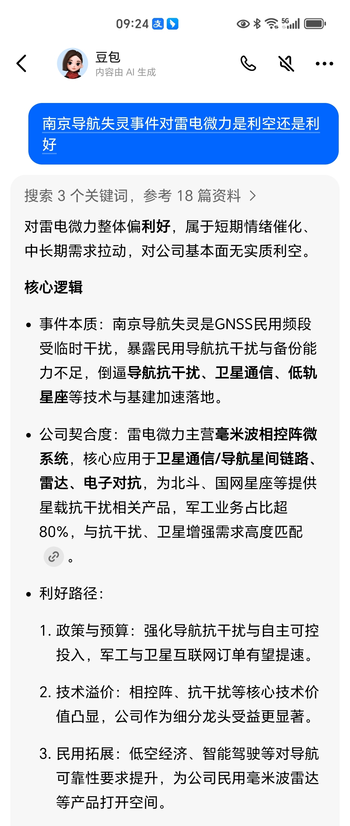 南京导航失灵,会极大提高卫星抗干扰投入,雷电微力产品应用契合度极高,未来想象空间