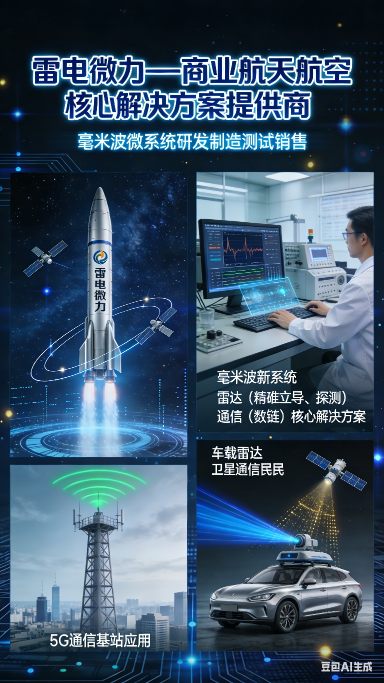 雷电微力主要业务:毫米波微系统(一种高度集成的微波/毫米波核心组件)的研发、制造